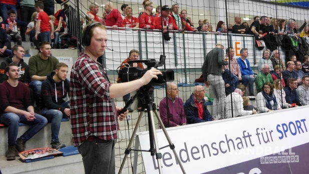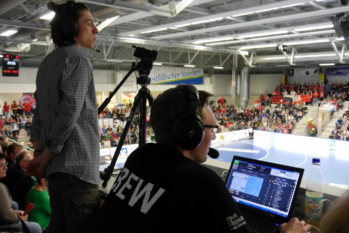 Simon Kottmann: „Ich weiß, dass die HBL unsere Live-Übertragungen und deren Entwicklung verfolgt. Mit Oliver Lücke (Leiter Unternehmenskommunikation bei der HBL/Anm. d. Red.) stehe ich in engem Austausch. Und von Sky, denen ja die Senderechte der 1. als auch der 2. Bundesliga gehören, weiß ich, dass sie unser Bewegtbild-Projekt ebenfalls beobachten. Das Ganze ist vor etwa zwei Jahren aus einer Überlegung heraus entstanden: Da wir von der HBL in jeder Saison verpflichtet sind, unsere Heimspiele zu filmen und anschließend zuzusenden, warum machen wir für unseren Verein nicht mehr daraus. Der Zufall wollte es, dass die Firma Oz.com aus Island mit einer neuen Idee im Bereich Livesport im Internet auf dem deutschen Markt Fuß fassen wollte und daraufhin die HBL, die damals noch in Dortmund saß, kontaktiert hat. Über den Kontakt Frank Bohmann war der Weg zu uns nicht weit. Die Isländer haben uns zu Beginn mit der nötigen Technik und einer neuen Software ausgestattet. Damals haben wir viel lernen können – auch, dass eine Bezahlschranke für Live-Spiele im Internet zumindest in der 2. Handball-Bundesliga noch nicht funktioniert. Du musst die Hürde niedrig halten, damit möglichst viele Fans zum Anklicken animiert werden. Deshalb schalten wir in unseren Videos auch vor Spielbeginn keine Werbung. Aus diesen Erfahrungen sind unsere kostenfreien Übertragungen zunächst auf Facebook, seit Mitte vergangener Saison auf Youtube entstanden. Auf dem Video-Portal läuft es insgesamt technisch besser, durch die Smart-TV-App können sich die Zuschauer zudem unsere Spiele in HD-Qualität auf den Fernseher ins heimische Wohnzimmer holen. Mit den Zugriffszahlen sind wir sehr zufrieden. Aktuell haben wir auf Youtube fast 700 Abonnenten, zwischen 3.000 und 4.500 Geräte rufen pro Spiel unser Live-Video ab. Dieses wird im Schnitt 20 Minuten angeschaut. Das sind sehr gute Zahlen. Die Qualität unserer Arbeit spricht sich herum, wir haben Stammzuschauer von Flensburg bis zur Schwäbischen Alb. Der nächste Schritt wird die Vermarktung sein. Aktuell haben wir fünf Anzeigenpartner, die uns die Kostendeckung ermöglichen. Aber auch die Werbepartner etwa auf der LED-Bande in unserer Arena profitieren aufgrund der höheren Reichweite. Da so ein Projekt sehr zeit- und personalintensiv ist, bin ich froh, mit der Sporthochschule Köln und TV Splash zwei Partner mit im Boot zu haben. Durch meinen Lehrauftrag an der SpoHo gelingt es, Sportstudenten aus meinem Seminar mit ins Projekt einzubinden. Sie haben die Chance, erste berufliche Erfahrungen zu sammeln und können sich bei uns vor und hinter der Kamera ausprobieren. Und dass TVsplash um Stefan Möller während der Übertragungen sowohl ihr technisches Equipment als auch ihr technisches Know-how zur Verfügung stellen, ist für den ASV ein Glücksfall. Mit wie viel Leidenschaft – weitgehend ehrenamtlich – die Studenten und Azubis bei der Sache sind, beeindruckt mich jedes Mal von neuem wieder. So haben sie beispielsweise zur Erfassung der Spieldaten eine eigene Software entwickelt, über die wir gleichzeitig Werbemittel in der Arena ansteuern. Daran haben bereits andere Vereine Interesse bekundet.“