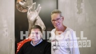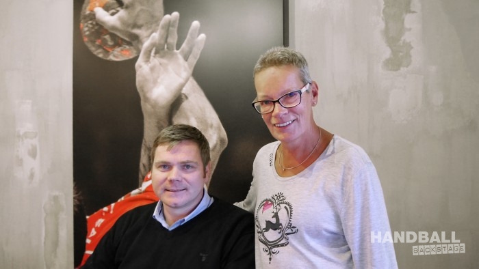 Barbara Braun-Lüdicke: „Das kann man nicht beschreiben. Angefangen habe ich damals zu Beginn meiner Tätigkeit in der Geschäftsstelle mit dem Karten abreißen.“ Sie überlegt - und ruft dann ins nebenan liegende Büro: „Axel, was mache ich hier eigentlich?“ Axel Geerken betritt den Raum: „Barbara ist meine und unser aller Chefin. Vor allem aber ist sie der gute Geist der MT.“ Und Barbara Braun-Lüdicke ergänzt: „Seitdem Axel hier ist, komme ich nicht mehr täglich in die Geschäftsstelle. So ein Handball-Unternehmen zu führen ist ein Vollzeitjob. Ich komme ein- bis dreimal pro Woche hier ins Büro, damit wir uns abstimmen können. Axel Geerken und ich haben einen guten Draht zueinander. Das hilft, schnell Entscheidungen zu treffen.“